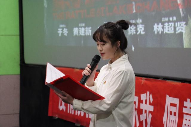 学生党员黄凯月在观影结束后演讲《长津湖》观后感。