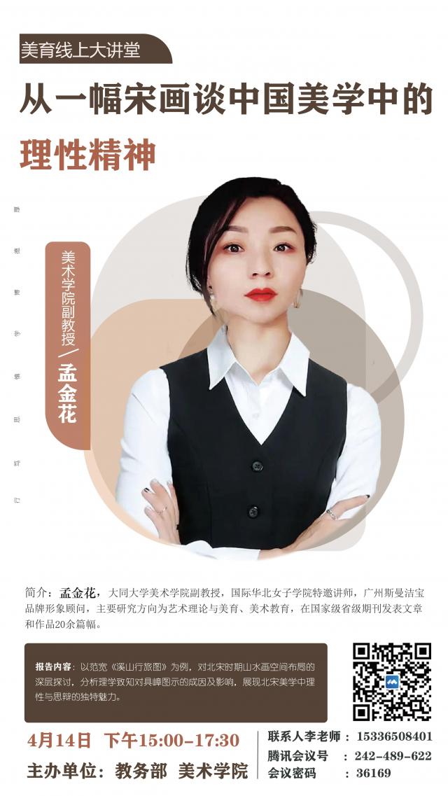 题目:文化大同美术云冈 演讲人:杨俊芳大同大学 时间:2022年3月30日(周三)下午3:00-5:00 腾讯会议号:497-948-443 会议密码:5145 |