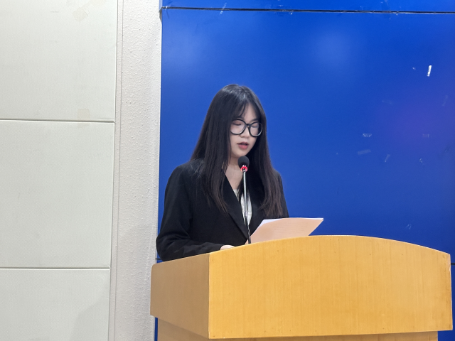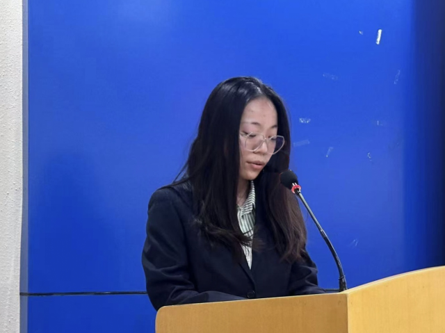 最后刘欣老师提出来三点,首先总结了过去一年各学生组织的杰出成果,对十二届主席团成员们的辛勤付出给予肯定,同时她也对新一届学生干部们提出了三点希望:二是以服务同学为根本,关注学生需求,帮助同学们解决实际问题;三是不断创新,增强组织活力,在学术、实践和校园文化活动中探索新形式,提升活动吸引力;注重团队协作、个人成长与政治素养的提升,在日常工作中加强沟通配合,培养责任意识,并加强政治学习,不断提升思想高度,为今后发展奠定坚实基础。