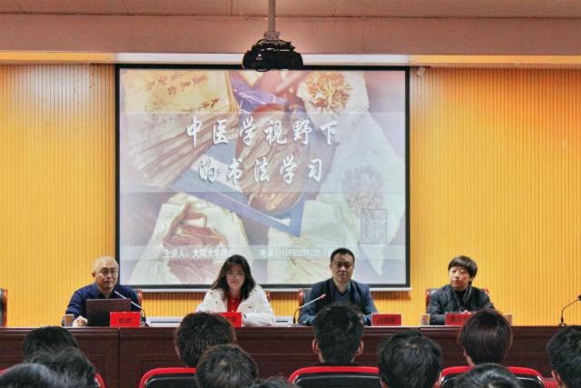 胡武作了题为《中医学视野下的书法学习》的讲座。他从中医学和书法在哲学上的共生关系、经典书法作品中的中医学故事、中医学者的书法作品、古代文献中的中医学宝藏、中医学生的书法修养及书法学习的途径等六方面阐述了书法和中医学的关系。