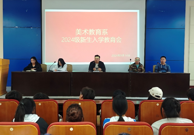 首先裴月强主任代表美术教育系全体师生向2024级的同学们致以最热烈的欢迎和最诚挚的祝福。裴主任在发言中从学院的发展历程、系部建设、教学安排、专业特色及发展前景等方面,为新生们进行了全面而深入的介绍。他结合当代大学生的实际,向新生们提出了四点建议:一是科学规划学习,积极参与实践;二是遵守课堂纪律,养成良好的学习习惯;三是提升综合素质,追求一专多能;四是勇于创新,开拓进取。