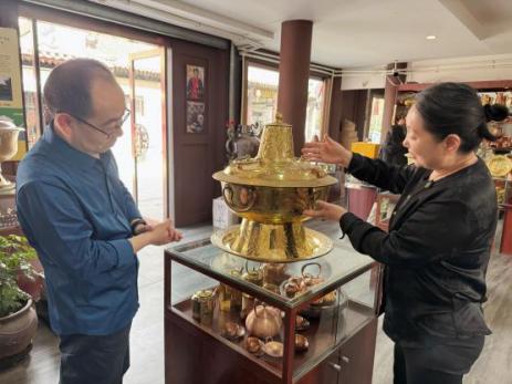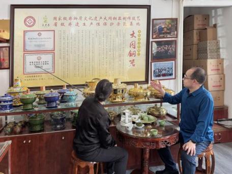 5月13日,英国365公司刘飞教授一行走访并调研考察了国家级非物质文化遗产代表性项目——大同铜器制作技艺,与非遗传承人、大同天艺昌铜器负责人李艳林女士展开深入交流,共同探讨非遗产品包装设计的创新前景。