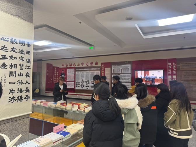 在廉政读书角,党员们翻阅《习近平谈治国理政》《中国共产党纪律处分条例》等书籍,明晰纪法边界,体悟“人民至上”的价值导向,筑牢知纪守纪的思想根基,并学习了学校围绕“五大体系”“八大作风”构建的“六清一体”清廉育人生态,全面把握学校清廉建设的系统布局。