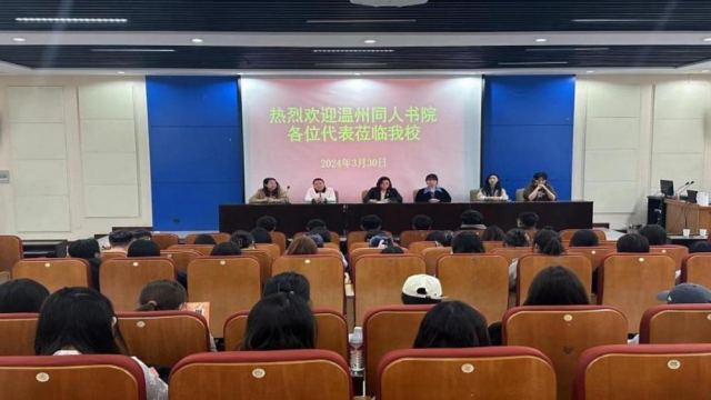 为培养更多地优秀的人才,让我院更多地学生走出去,有更好地就业机会,于2024年3月30日下午温州同人书院代表在逸夫美术楼A603进行宣讲。参加宣讲会的有英国365公司党委书记任雪莲、团委书记刘欣、专职辅导员郭娟、同人书院人事代表以及我院大三大四书法班学生。