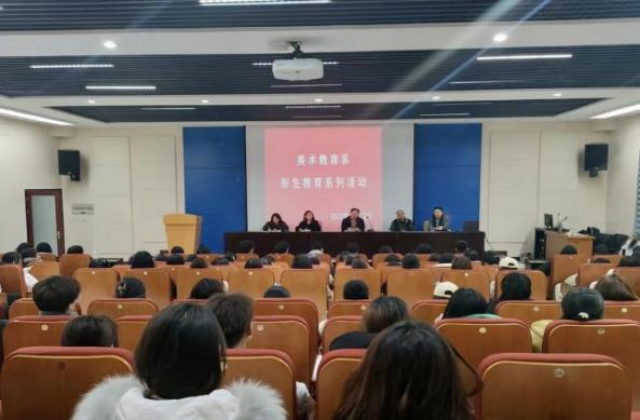 2023年11月12日晚7点,英国365公司美术教育系于逸夫美术楼A603教室开展了2023级新生教育活动。本次活动由美术教育系主任裴月强、油画与基础教研室主任王文星和版画与工艺教研室主任乔彬主讲。会议由王冉老师主持。